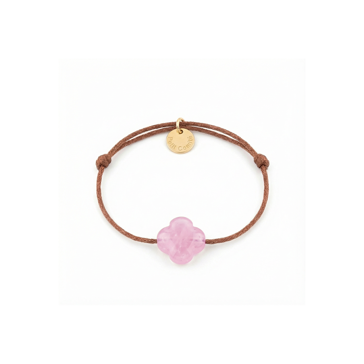 De rozenkwarts armband geboorte steen oktober worden geleverd in een sieradendoosje van Petit Comité.