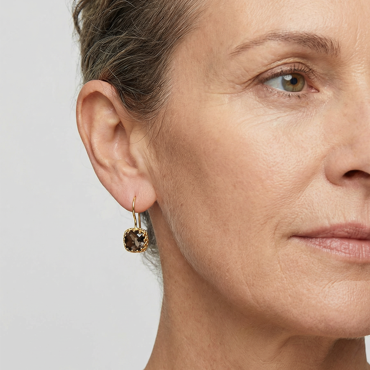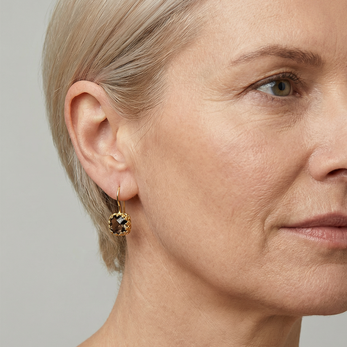 De zorgvuldig facetgeslepen bruine topaas (smokey topaas) zorgt voor een elegant en diep kleurenspel. De steen kenmerkt zich door zijn warme, rokerige bruintint met subtiele transparante nuances, die bij iedere beweging het licht vangt en een zachte, mysterieuze glans verspreidt. De natuurlijke aardetinten stralen rust en verfijning uit, terwijl de helderheid zorgt voor een elegante en moderne uitstraling. Hierdoor zijn de Elodie Oorbellen perfect te dragen bij zowel een chique avondlook als een stijlvolle alledaagse outfit.