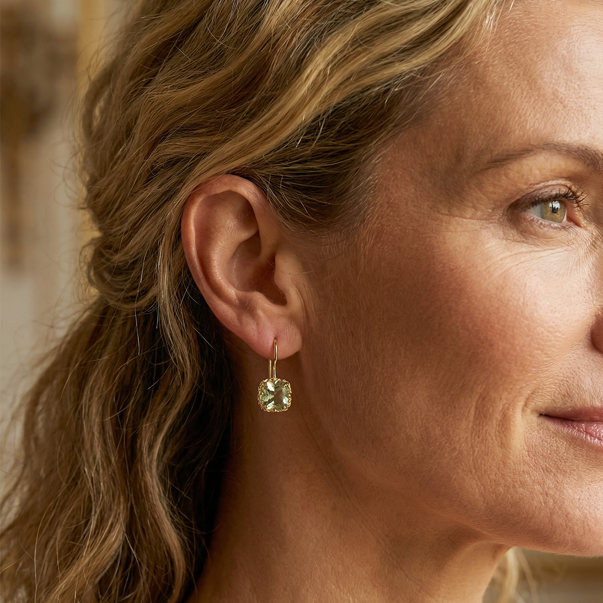 De zorgvuldig facetgeslepen groene amethist zorgt voor een elegant en sprankelend kleurenspel. De steen kenmerkt zich door zijn heldere, lichtgroene tint met subtiele nuances, die bij iedere beweging het licht vangt en een zachte glans verspreidt. De frisse kleur straalt rust en verfijning uit, terwijl de transparantie zorgt voor een lichte en elegante uitstraling. Hierdoor zijn de Elodie Oorbellen perfect te dragen bij zowel een chique avondlook als een stijlvolle alledaagse outfit.