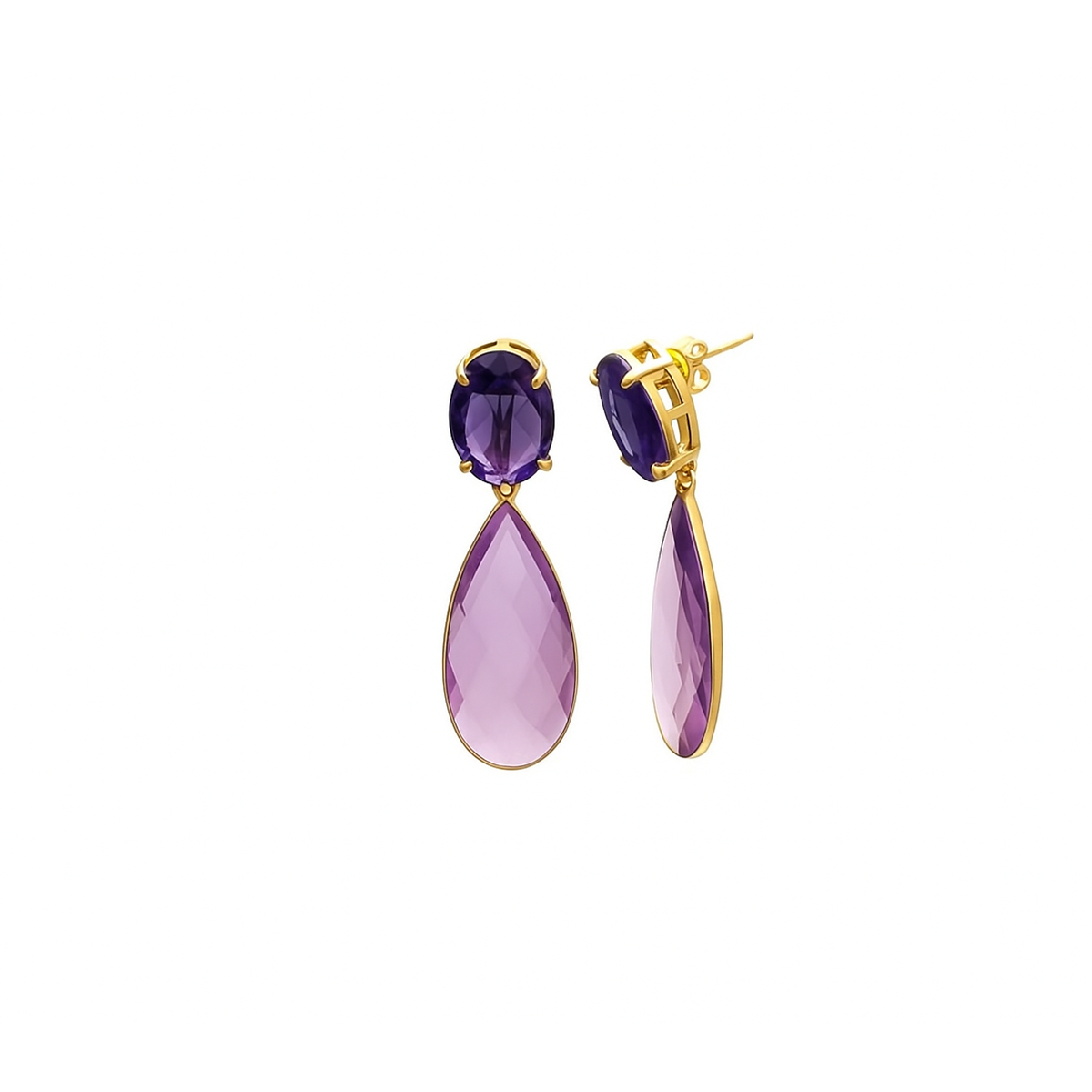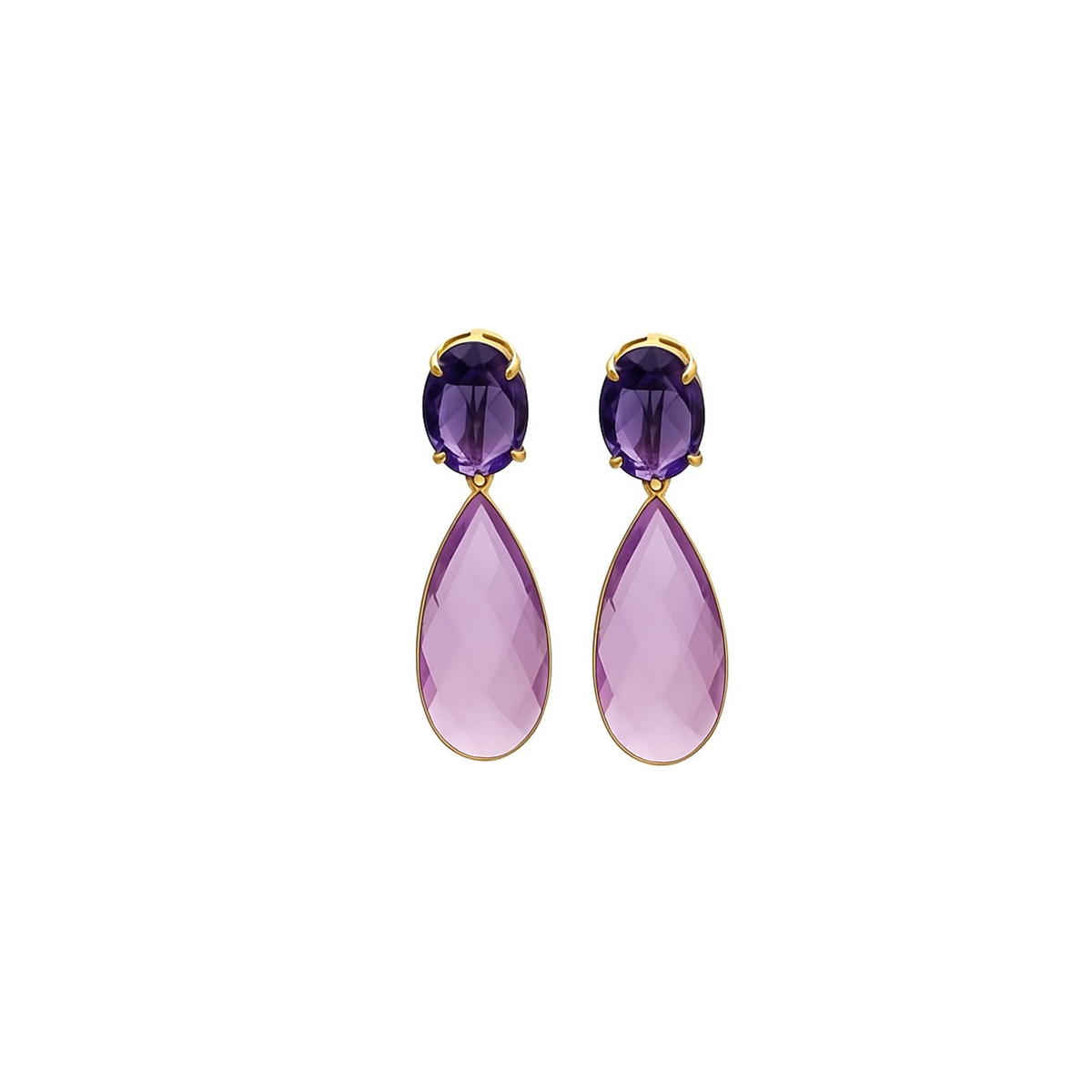 De combinatie van facetgeslepen Ioliet en Amethist zorgt voor een verfijnde schittering die prachtig het licht vangt. Loliet staat bekend om zijn diepe paarse-blauwe tinten en vrouwelijke allure, terwijl de amtheist een heldere, zachte glans toevoegt. Samen creëren ze een harmonieus en luxe kleurspel dat moeiteloos past bij zowel minimalistische als chique outfits.
