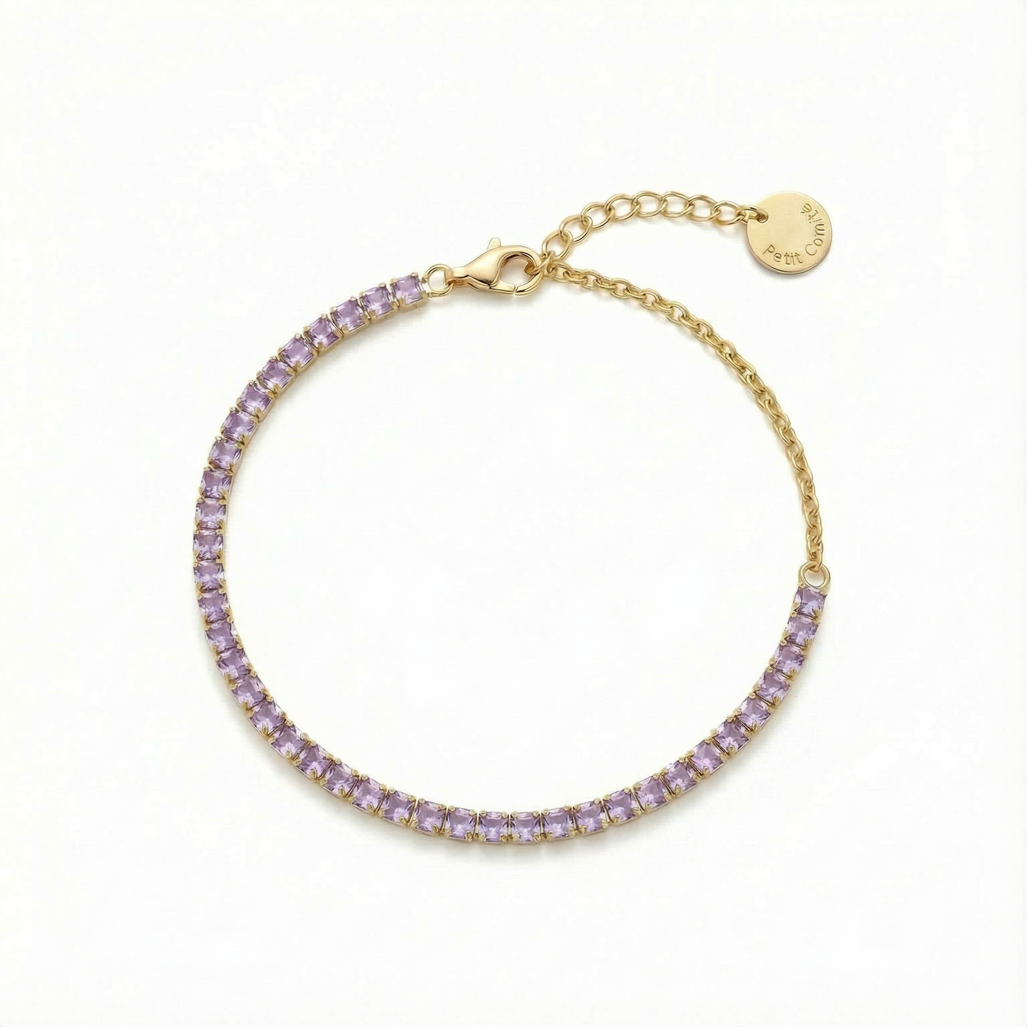 De amethist armband geboorte steen februari worden geleverd in een sieradendoosje van Petit Comité.