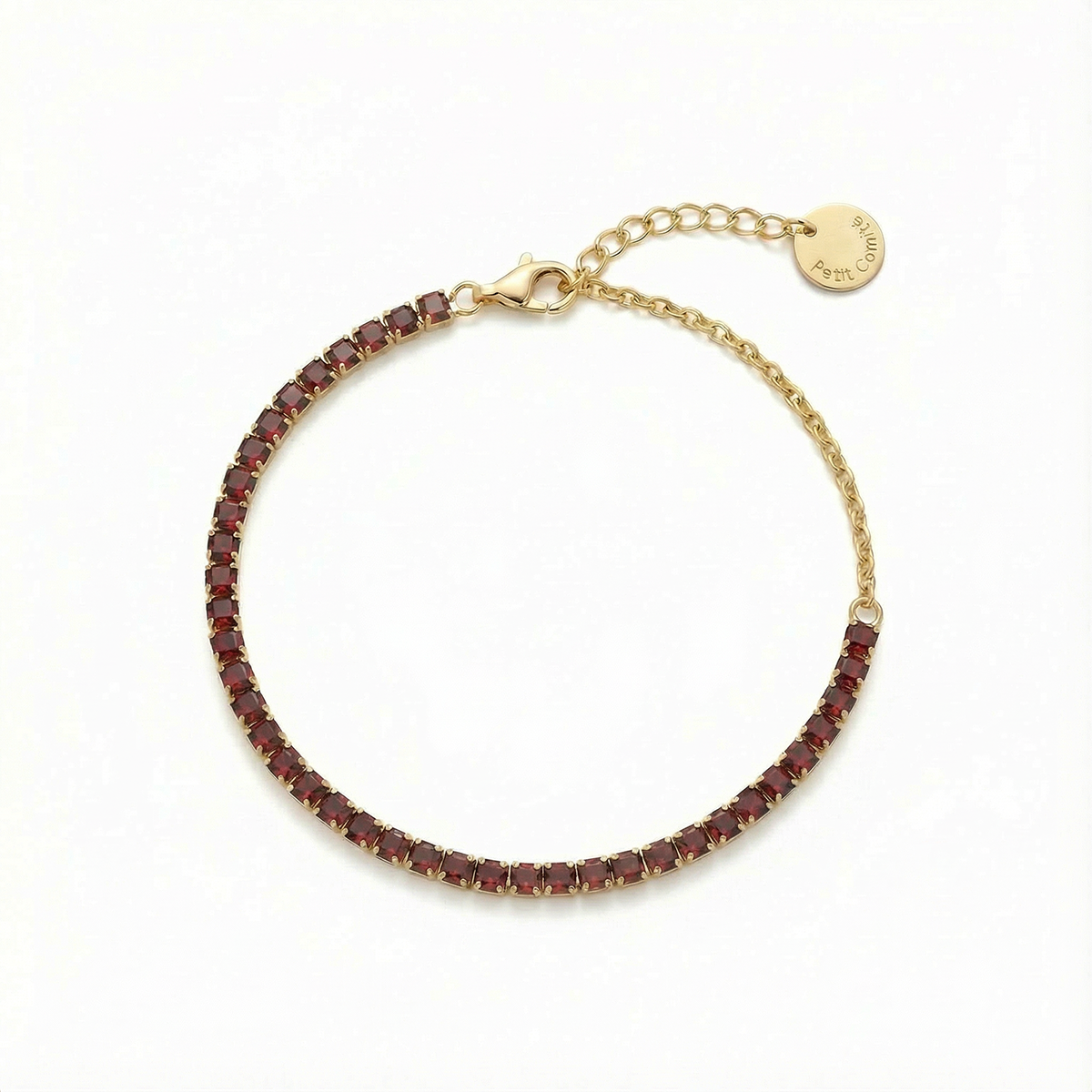 De granaat armband geboorte steen januari worden geleverd in een sieradendoosje van Petit Comité.